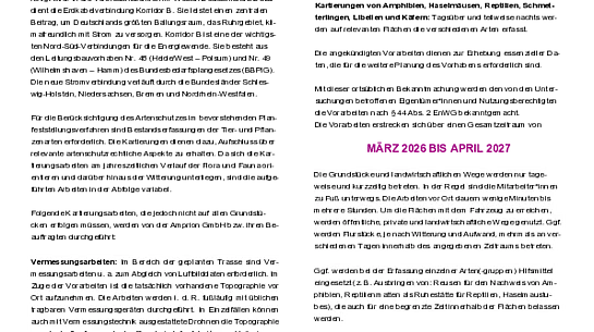Amprion - Ankündigung von Kartierungsarbeiten für die Trassenplanung im Bereich der Gemeinde Nindorf Erdkabelverbindung Korridor B