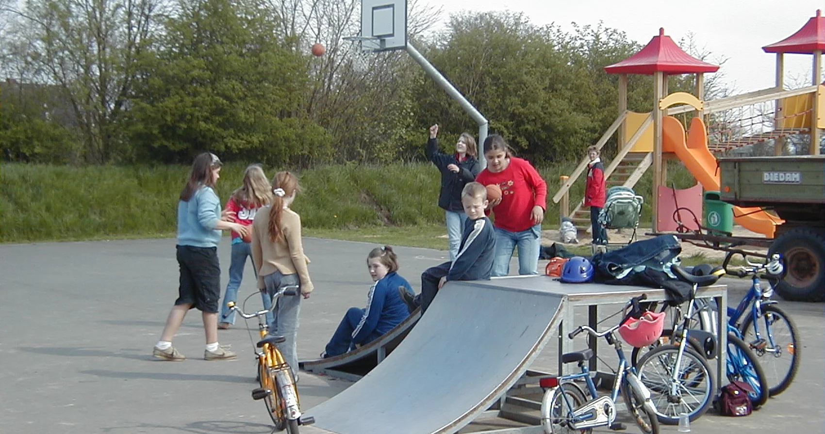 Idee: Ausgestaltung einer Fläche am Gemeindezentrum Alte Schule mit und für die Jugendlichen. Einbindung der Jugend in das Dorfgemeinschaftszentrum, aktive Beteiligung, um Vandalismus, aber auch Fehlinvestitionen vorzubeugen.Gleitender Übergang zwischen dem Spielplatz des Kindergartens, sonstigen Spielgeräten zum Spieleland.