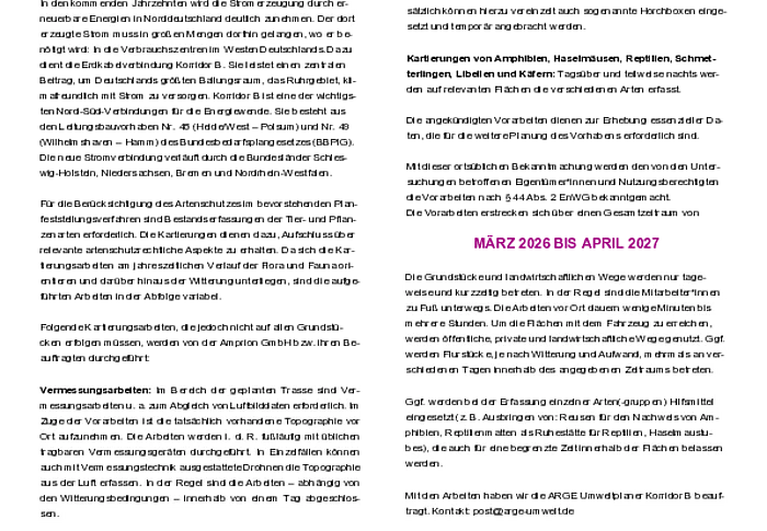Amprion - Ankündigung von Kartierungsarbeiten für die Trassenplanung im Bereich der Gemeinde Epenwöhrden Erdkabelverbindung Korridor B